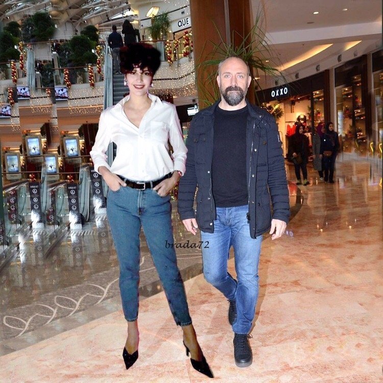 за разлика от супер скромното облекло на партньора си Енгин.