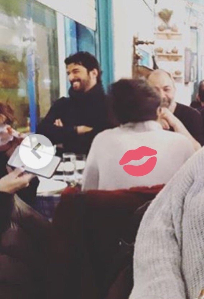 Берг и Енгин са на масата до оркестъра, вдясно на екрана. Той се вижда повече, защото единият музикант закрива Берг, но за секунди се вижда и тя.