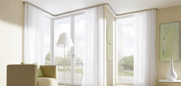 При ъглови дъги за корниз много добре се получава с +5см от страна, дъгата добавя +15, т.е. при прозорец (отвор за прозорец) 210см се взема права релса 220+2*15см дъги, общо 250 е на тавана.