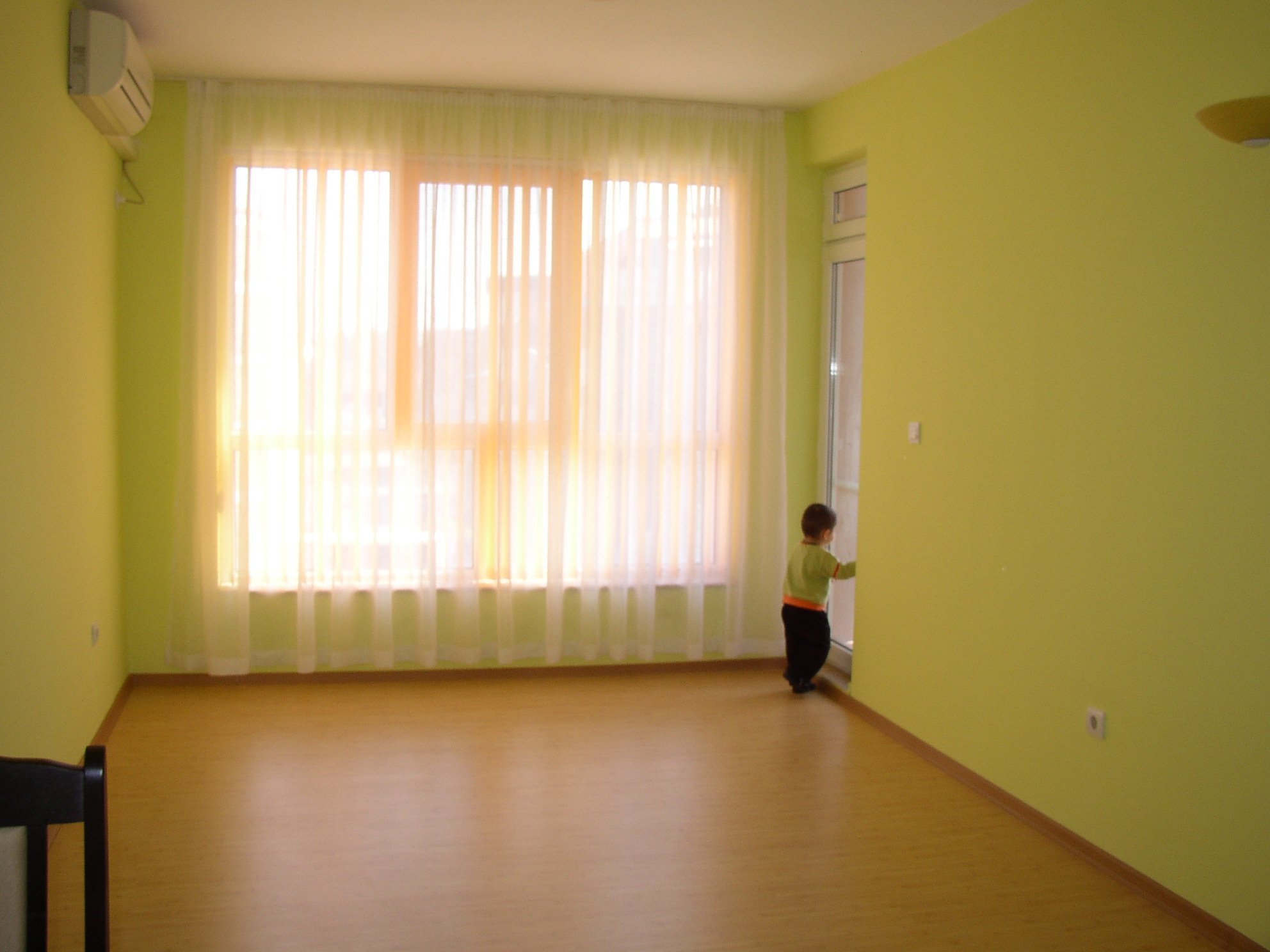 На бели стени,бели мебели,много светъл пакет,сложих пердета,възглавници на дивана и някои дреболии в тъмно синьо.Става въпрос за хола...на мен ми харесва.Изглежда просторно и чисто.