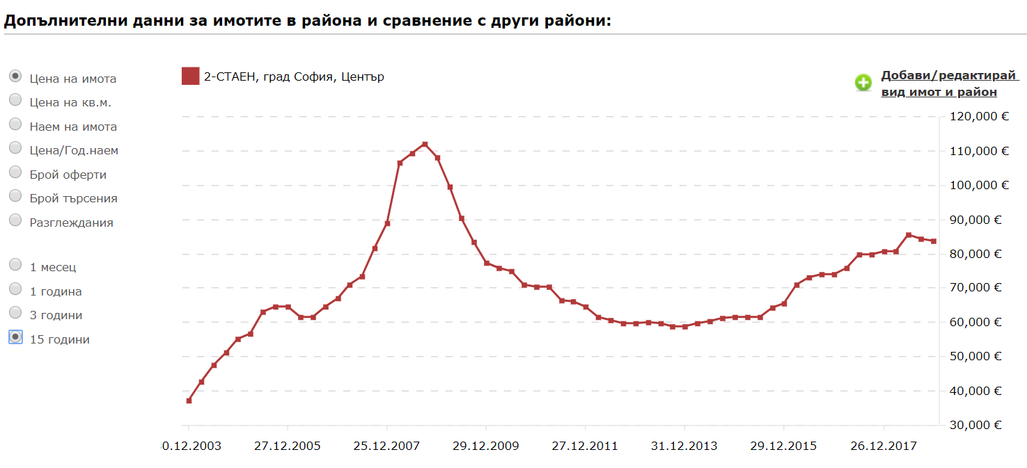 Забавлявай се. Имотите,  които ме интересуват през годините си вдигат цените неизменно. Не съм забелязала някои имоти да падат, може и да има изключения, но моите наблюдения са такива. Тоест при Х сума свободни пари е по-добре да се купи ако харесаш нещо, отколкото да държиш в банка или пък не дай боже продадеш и да живееш под наем, щото пазарът бил благоприятен. Ако много се пренасити търсенето, може и да падне нещо, но както някой писа в новите квартали по-скоро.