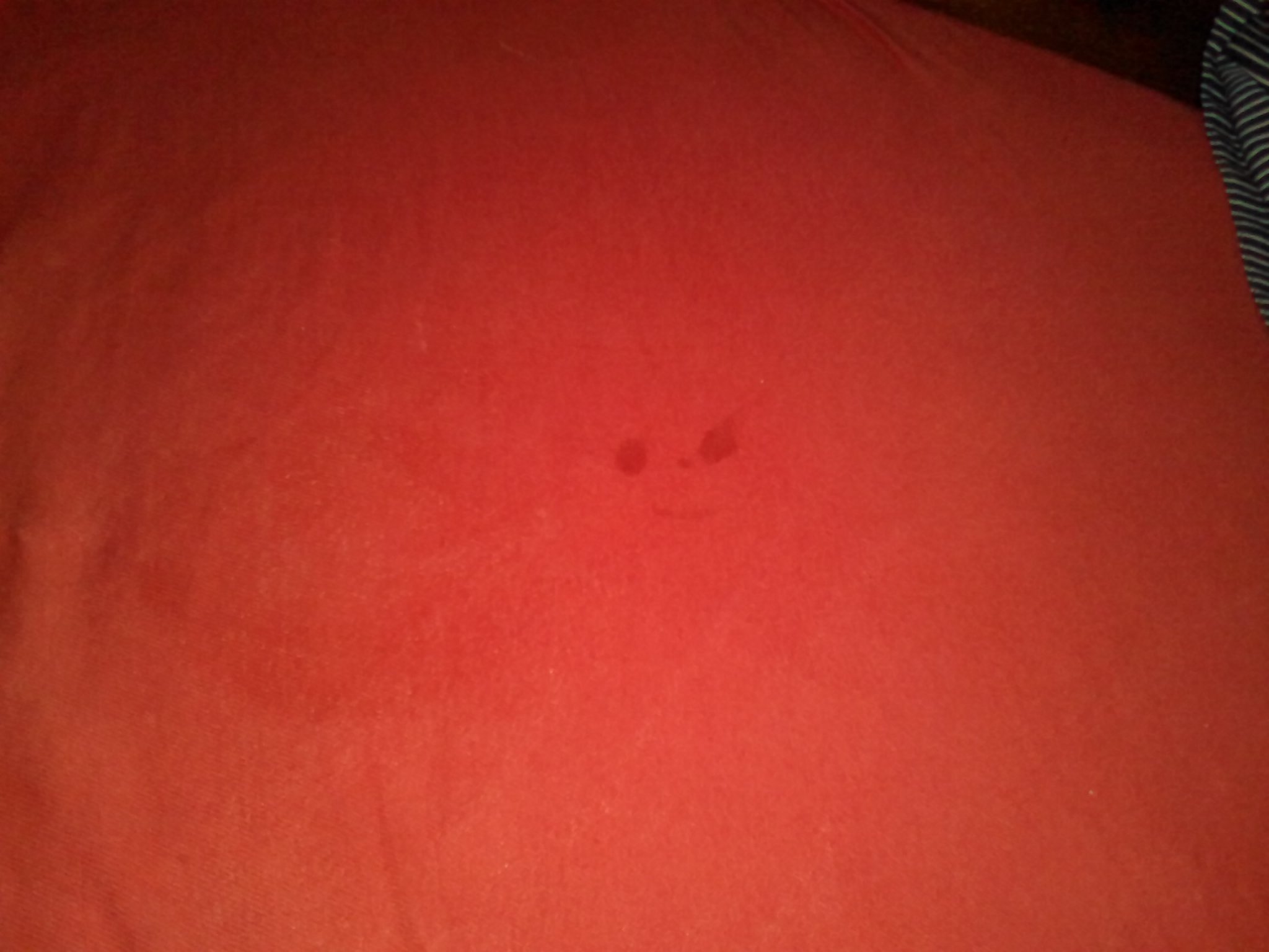 Много бях изплашена.През нощта я бях взела при мен на спалнята за да я наблюдавам.Бяхме на запалена лампа.Не смеех да заспя.По едно време станах за нещио и като се върнах,видях това на чаршафа.