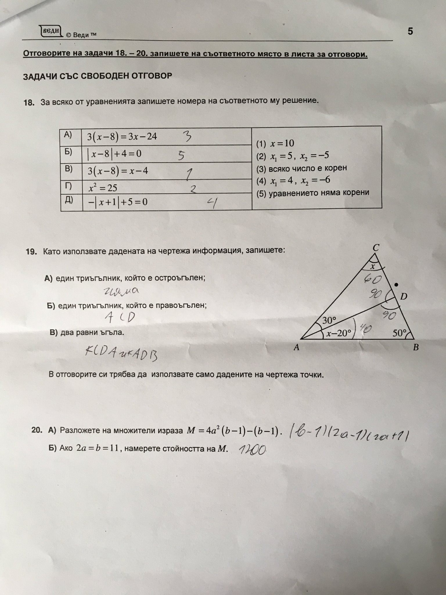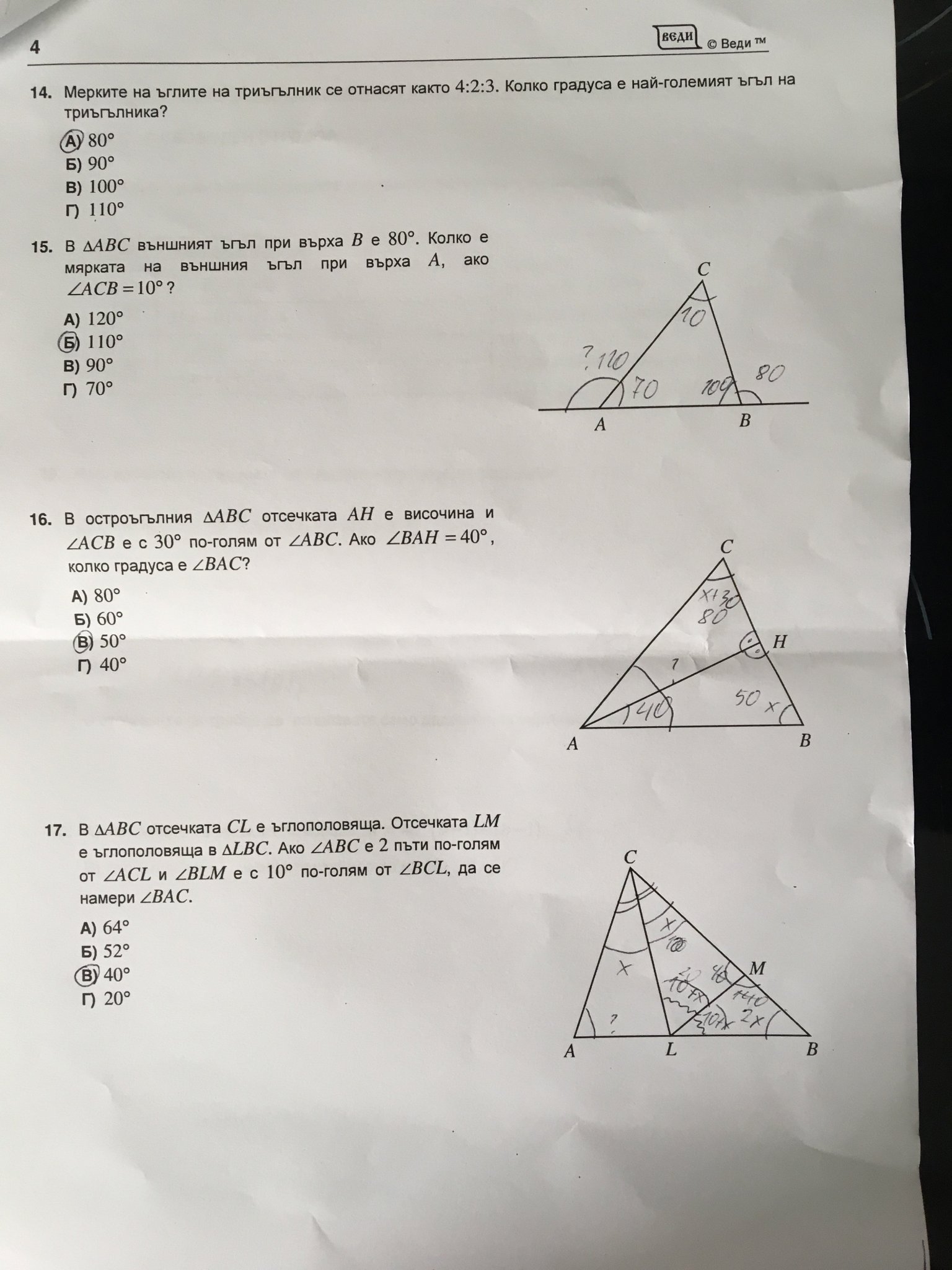 На задача 17 верният отговор е Б (грешно е отбелязал), а на 19 а) е АВС (ще се гръмна "няма").