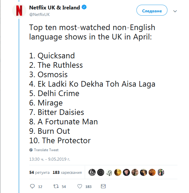 Най-гледаните неанглоезични сериали на Нетфликс за април във Великобритания