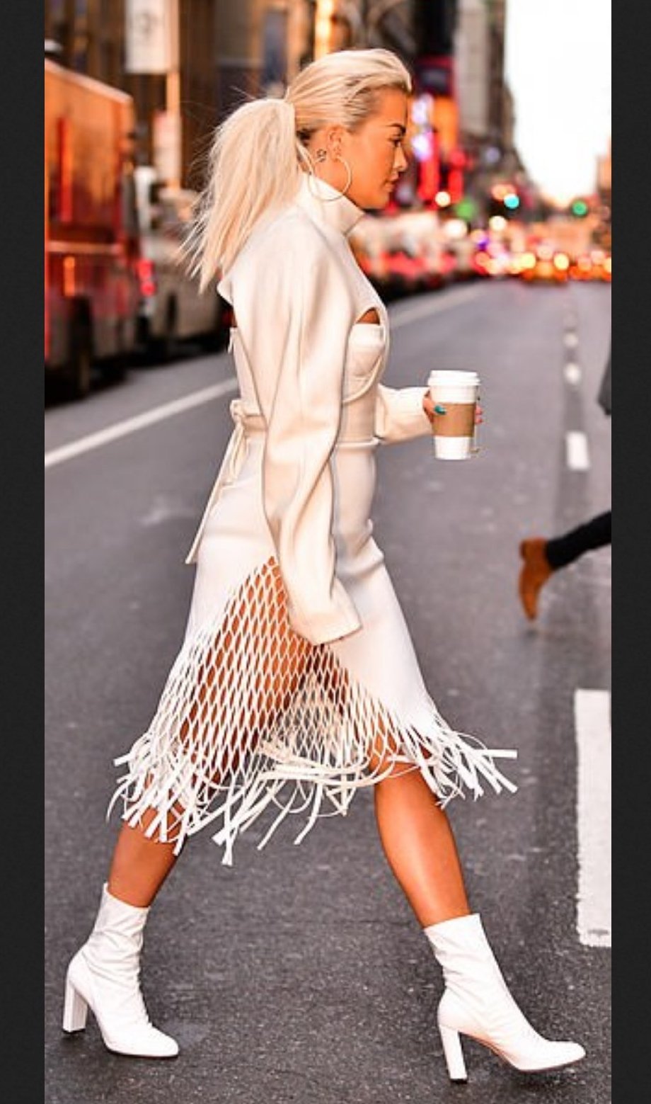С този белия костюм Н. Ш. наистина прилича на ромка, дето се е наконтила за сватбата на сестра си. И прическата в същия стил.