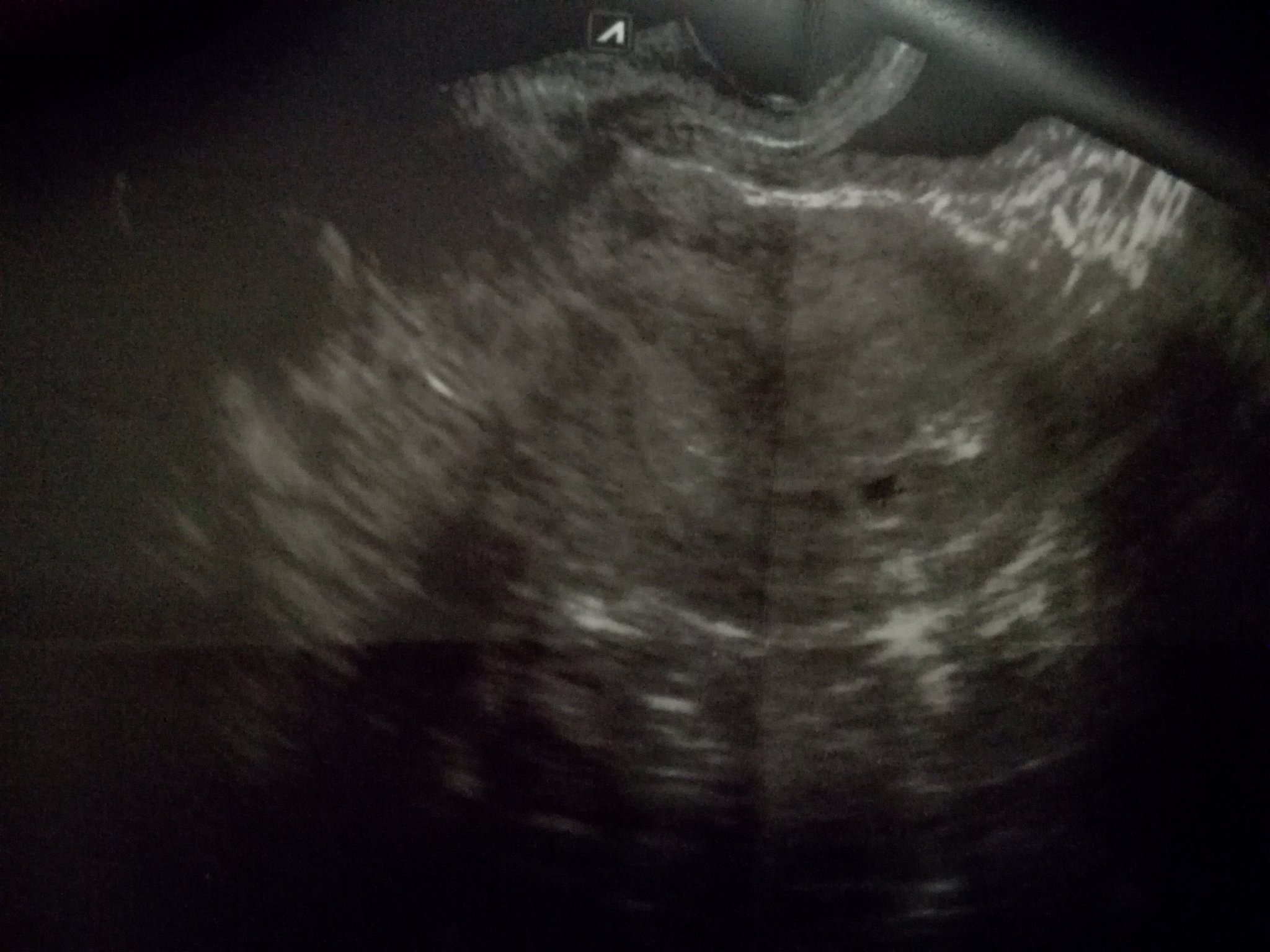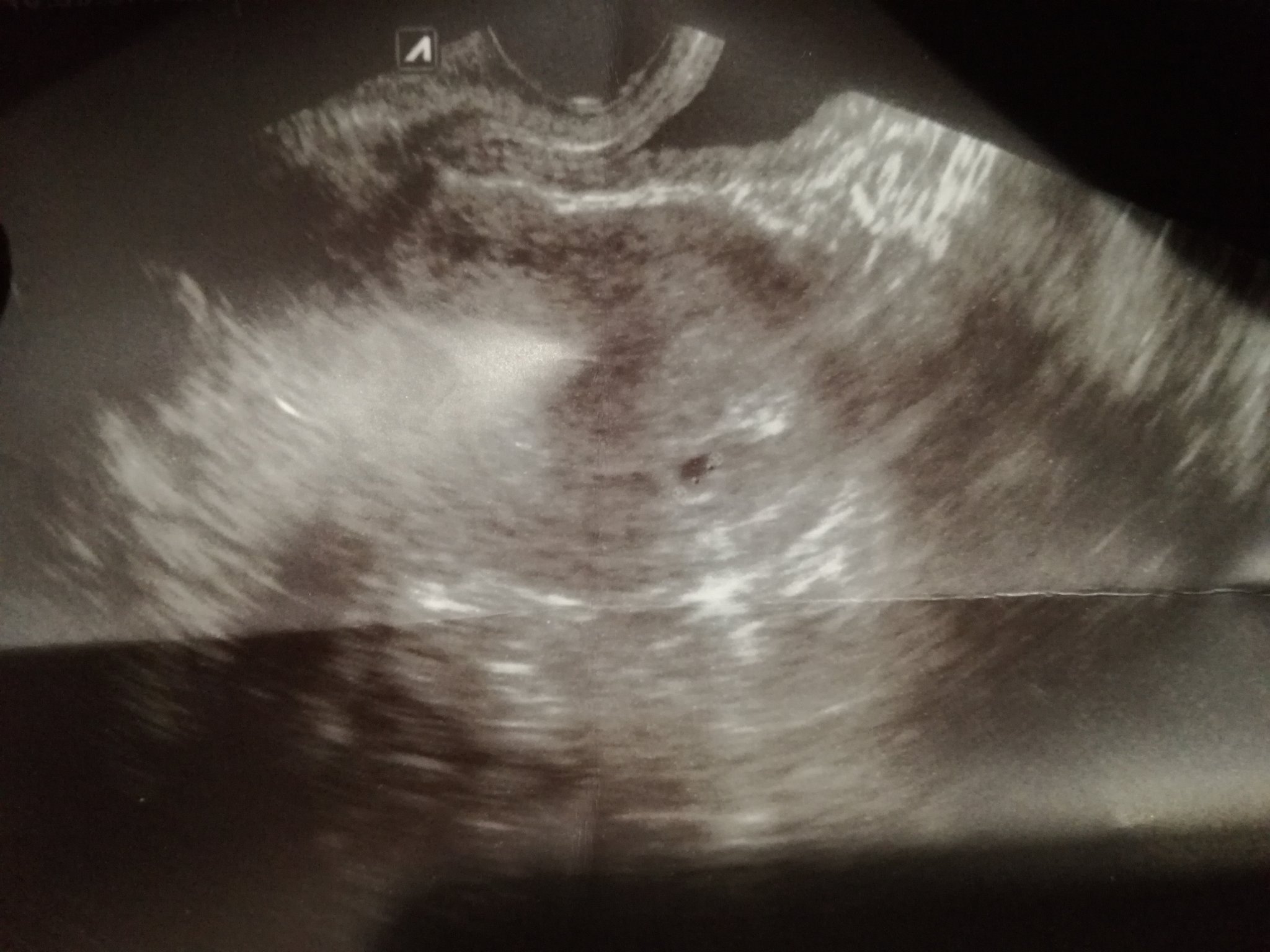 Здравейте отново от мен, исках да споделя терзанията си с вас, пък и малко кураж ще се почувствам по-леко. Аз разбрах за бременността на 3.02 имах овулация към 17-18.01 , началото на предния ми МЦ беше на 05.01 сега чаках на 31.01 след ярко положителния тест в събота отидох за кръвен излезе 1193 при реф. гр >1 , отидох на преглед и видяхме само сакчето, то беше и рано за друго предполагам не знам дали по снимката се вижда, че има нещо или аз така си въобразявам.