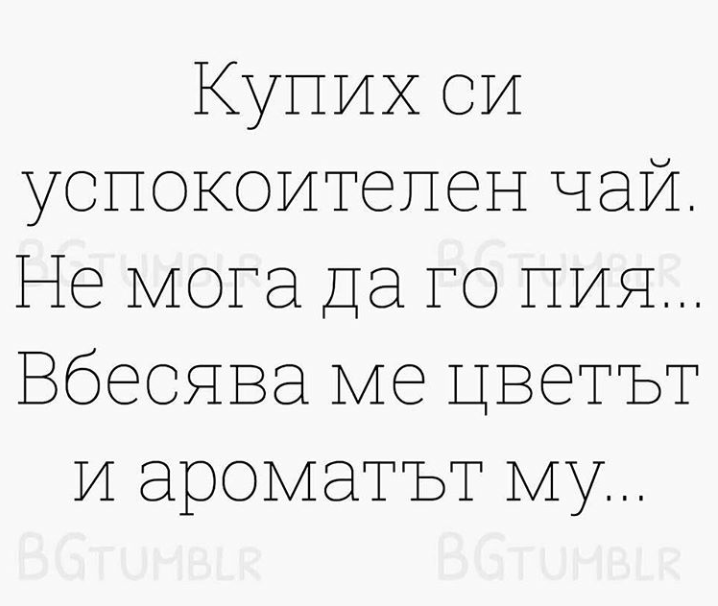 — За Бога, Пешо, що за съпруг си ти? Главата ти е постоянно заровена в книгите. Не се интересуваш дори дали съм жена. Понякога ми се иска да съм книга, поне щеше да ме разлистваш…