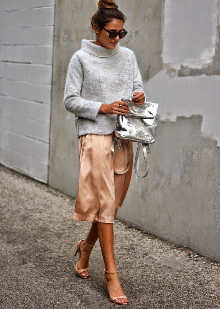 Напоследък изненадвам самата себе си като правя някакви монохромни тоалети, дори онзи ден сив панталон, една идея по-светло сив пуловер, сив шал - всичко това при положение, че почти не нося сиво и че щерка ми ми оплю избора - и за моя мъка нямах сива връхна дреха и сложих кафяво палто, но мисълта ми беше, че понякога с няколко оттенъка на един цвят се получават рядко симпатични комбинации вкл. аксесоарите. И определено бих пробвала и сребриста чанта със всичко друго в сиво и черно кожено яке/палто например.