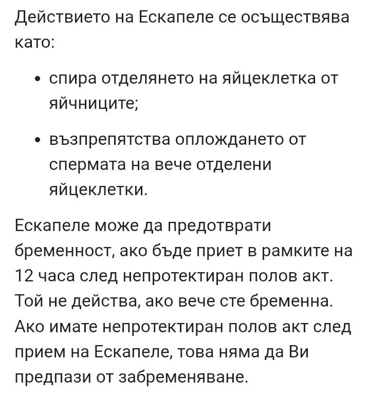 Ескапел действа само ако се вземе преди овулацията. След нея няма никакъв смисъл