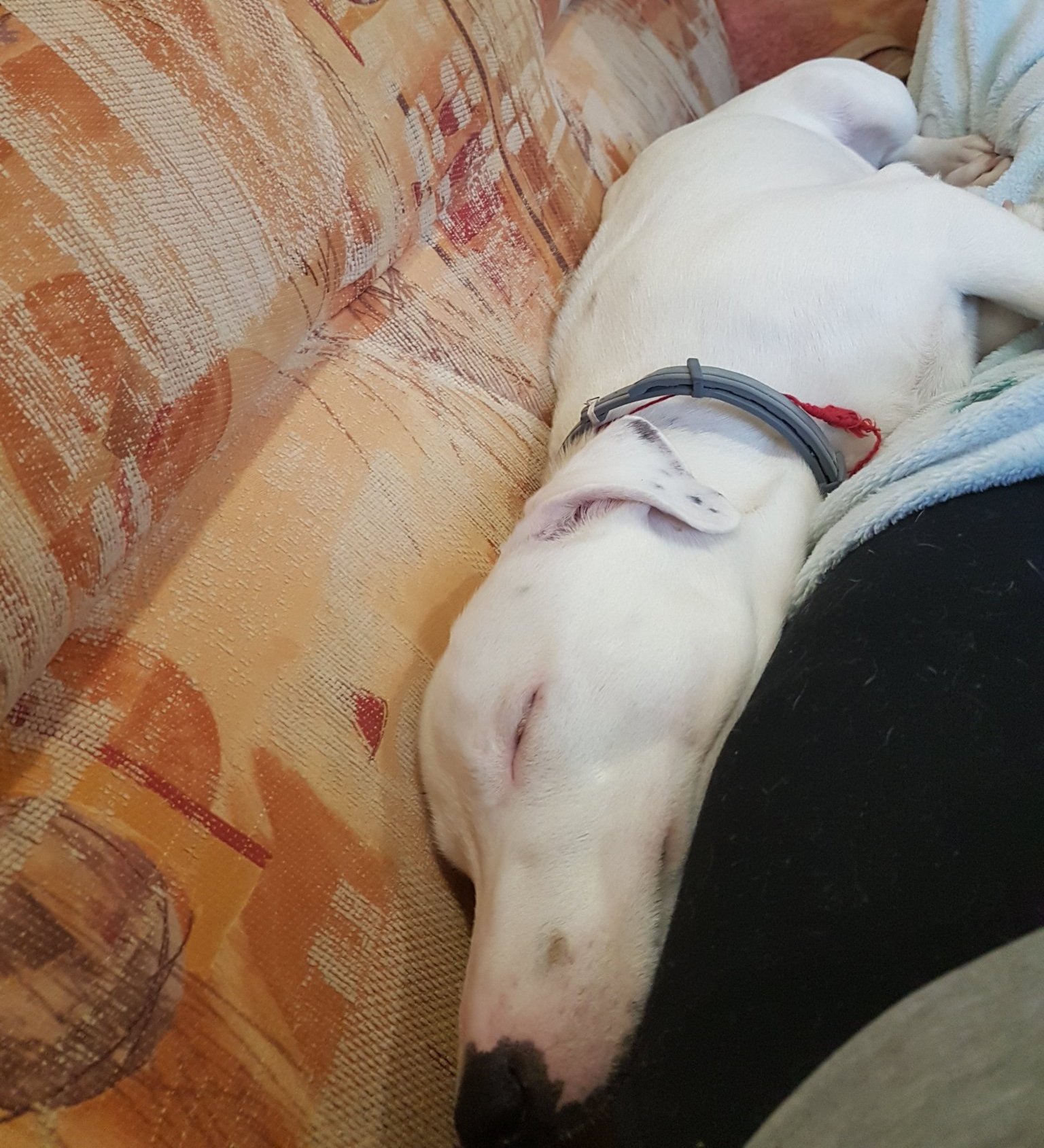 На врата на Ерос има само каишка против бълхи, даваме му хапчета и го мажем с ампули но за всеки случай, то дори и не знам дали има файда, освен, че го ароматизира на билки. То това животно по принцип за никакви каишки не е, винаги намира къде да се закачи.