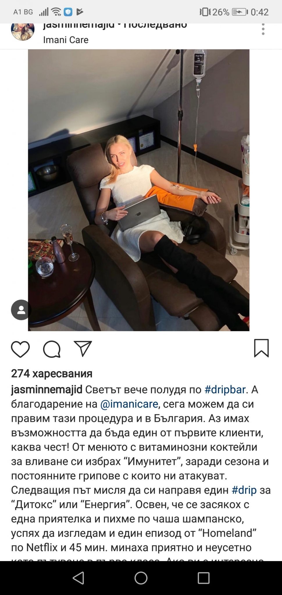 Жасмина си влива имунитет.. какво ли не измислят вече..