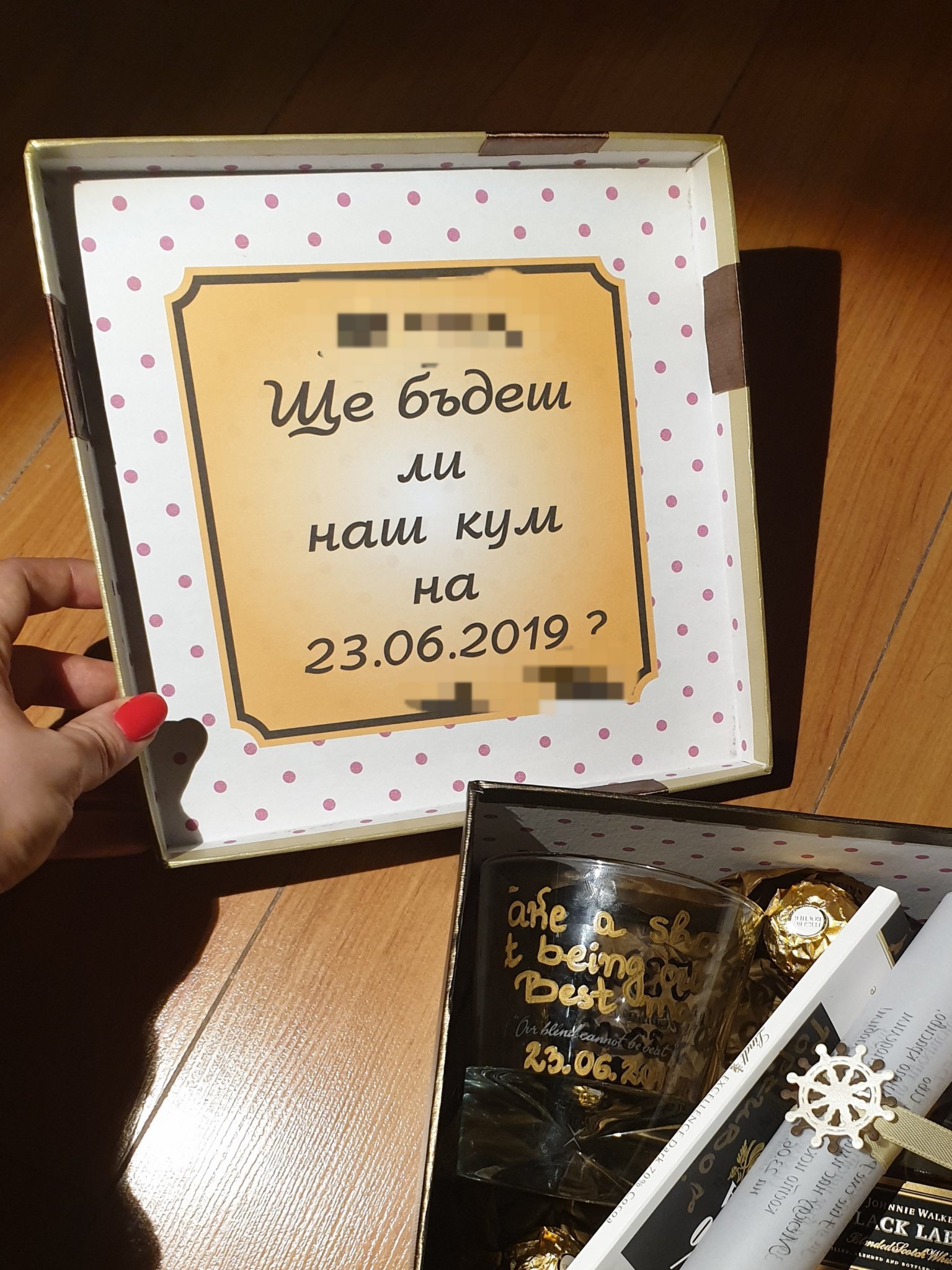 Кумовете ни няма да са двойка, макар че много искахме, и затова правим две отделни покани. Скоро ще кача и тази на кумата.