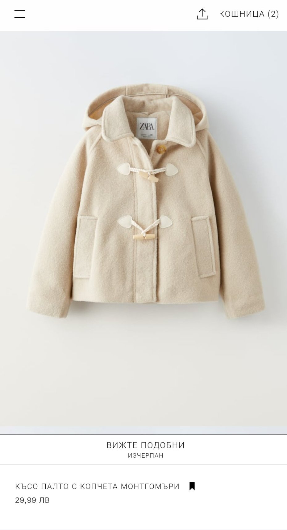 Предлагам това палто с 60% вълна в размер С, не ми допадна и е овърсайз. Ще го връщам в сряда, ако някой го търси да пише.