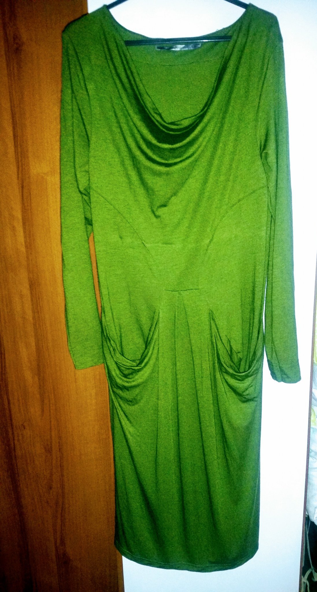 Моят бик като види зелено полудява. След като я премерих вкъщи и нещо ме боцкаше, установих по етикета че има и вълна в състава, а е тъничка. Не знам дали ще я сложа някога предвид това, но нека си виси в гардероба да й се радвам.