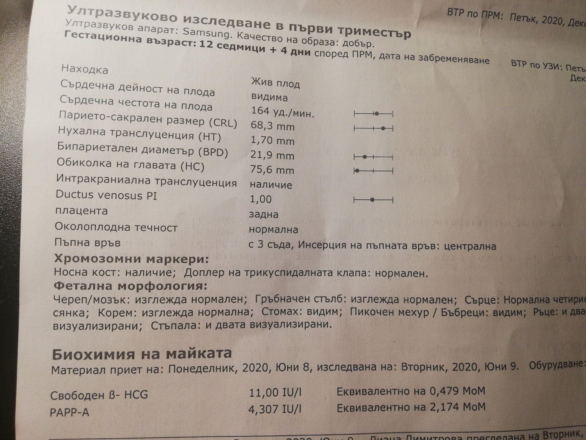 Дианче, не се наемам да коментирам изследванията ти. Просто искам да те помоля пак да се наслаждаваш на бременността си! Какво да кажем ние с гайдите, дето децата ни са родени през 90-те...Какво ни изследвали, какво не. Горе главата!