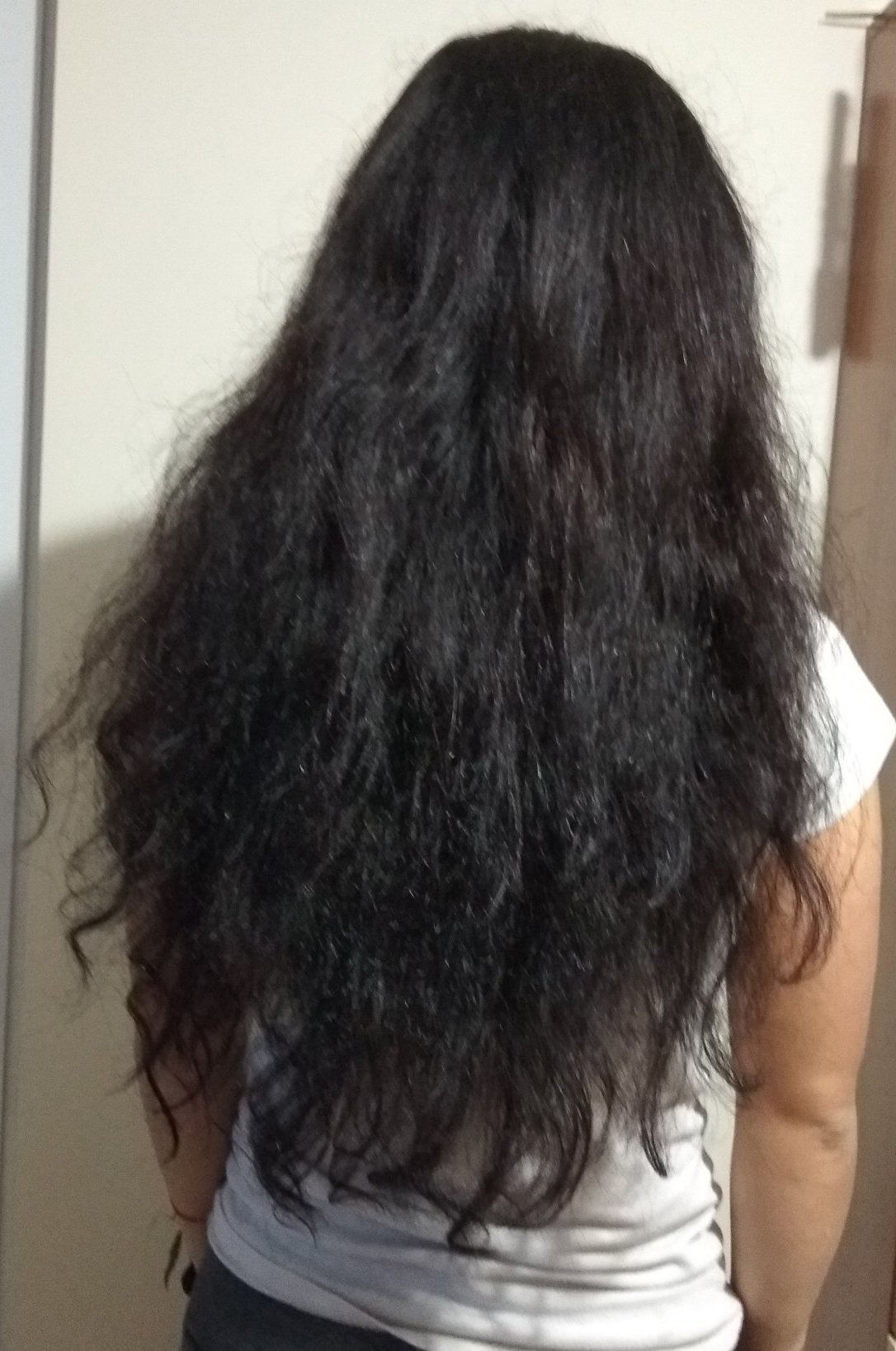 Може ли и аз да се включа...тук съм с измита коса, изсушена на въздух сама и после сресана, не съм стилизирана с нищо. Имах мострички на зеления провайбър ш и м, тях ползвах сега, преди това стоях 6,7 часа с рициново масло в корените и д. Еластисайзер по дължините. Накрая завърших с хидратиращо то Шипково олио на Орайт. Приемам съвети как да не изглеждам като избухнал бойлер в тръстика, без да я третирам топлинно. Расте много бързо и съм за боядисване. Малко преди снимката я бях вързала за малко с ластик и стана лека чупка, където е бил ластика.