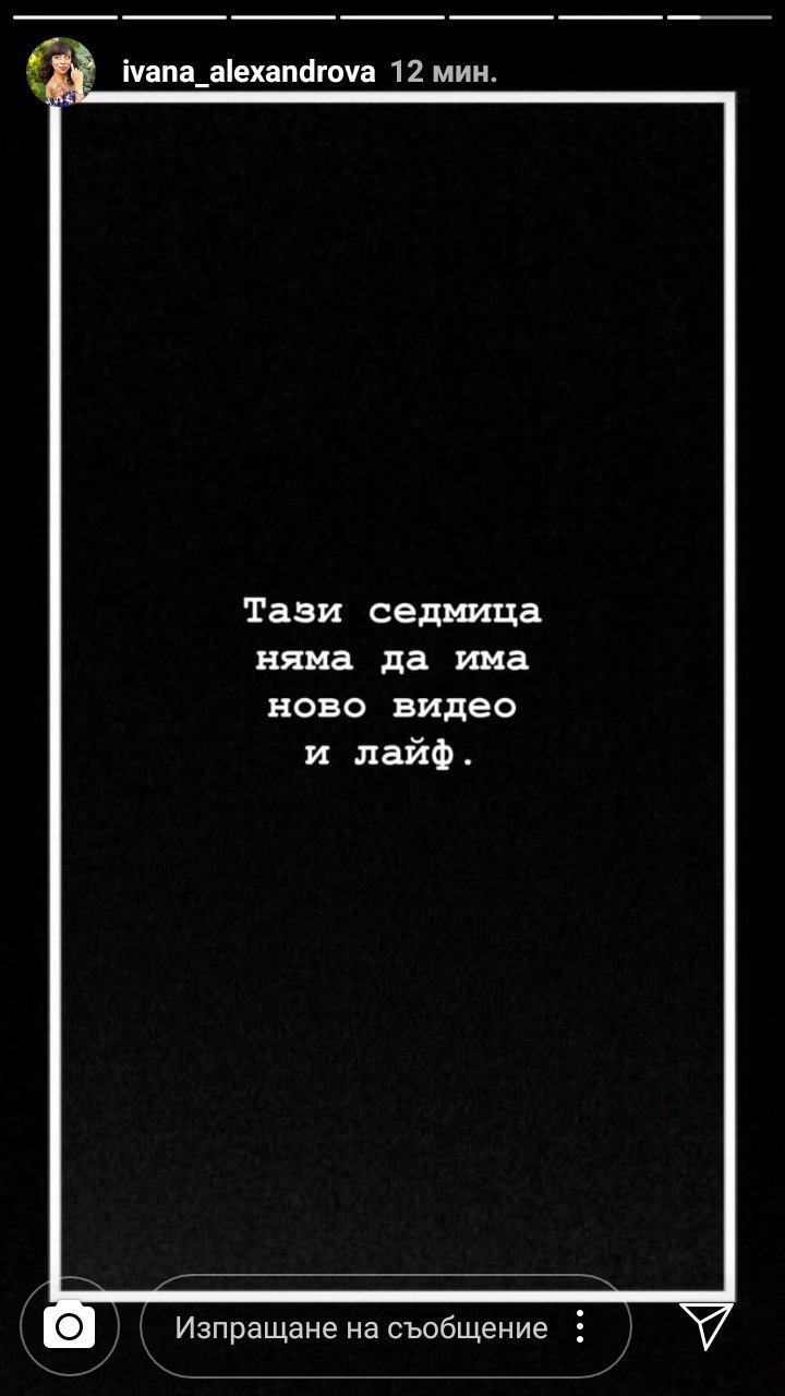 На мен също ми минаха тези мисли, нека да не прибързваме с заключенията. Дори и друг път, когато не е качвала видео е качвала стори,че примерно има ангажименти или  ще пътуват с Боби, но никога не е слагала черен фон.