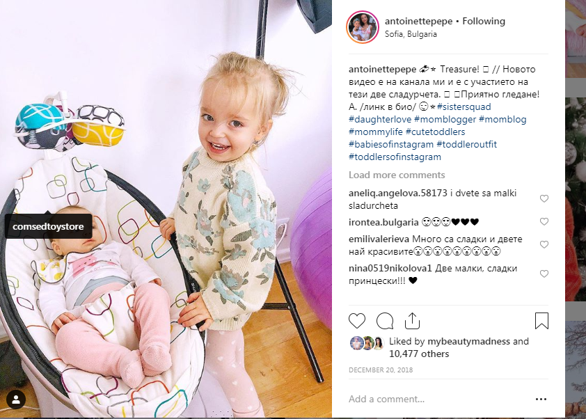Приказва, че уж просто така между другото децата ѝ се появават във влоговете и като пораснат вероятно ще спре,щото ще имат мнение и свои занимания, но не се свени да ги експлоатира за целите на разнообразни спонсори. Всичките бебешки и детски неща ги има, защото нон стоп тика децата като стори лайн, те не са просто фон на нейния живот, а основното, което ѝ вади хляба, откакто стана мами ляйфстайл канал...малко ми е неетично цялото това нещо...ясно, че децата до някое време правят каквото каже родителят, но нека поне не ни залъгва, че и себе си..