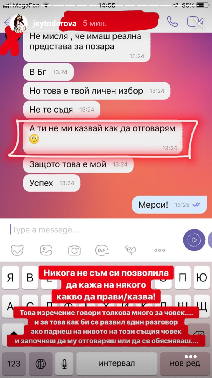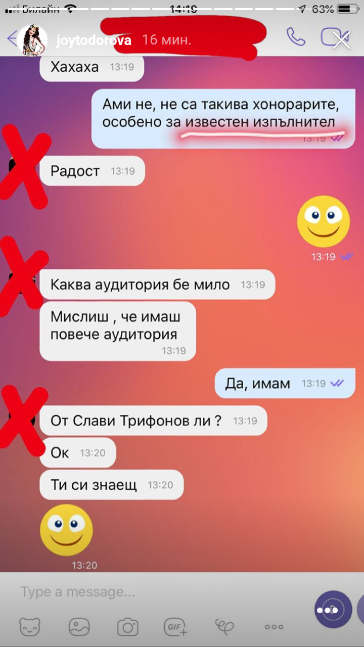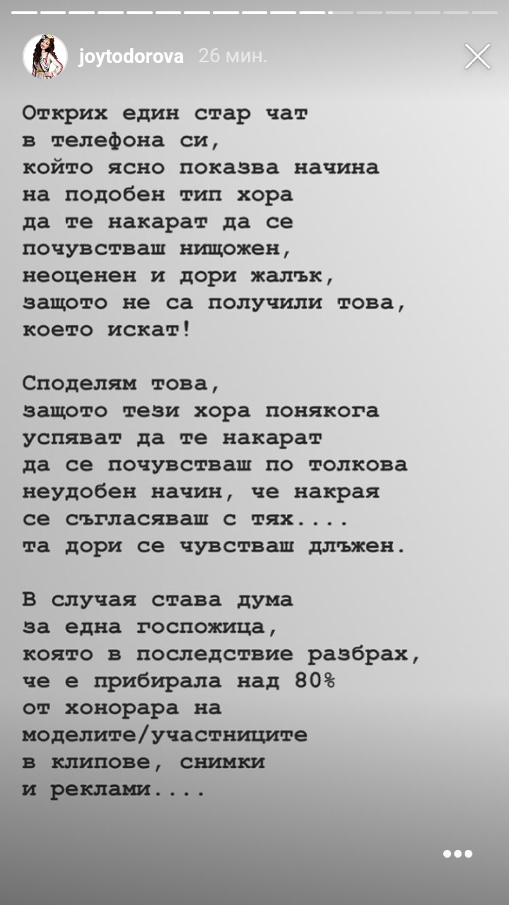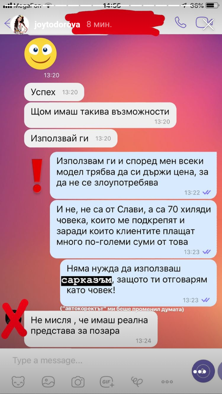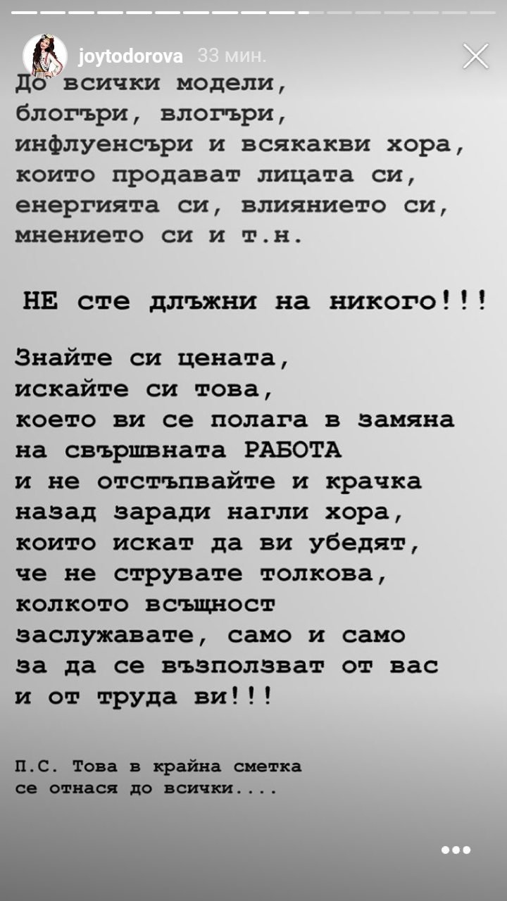 Става дума за едно стори на Джой Тодорова. Оплаква се от някаква пишман агентка. Споделила е и чат.