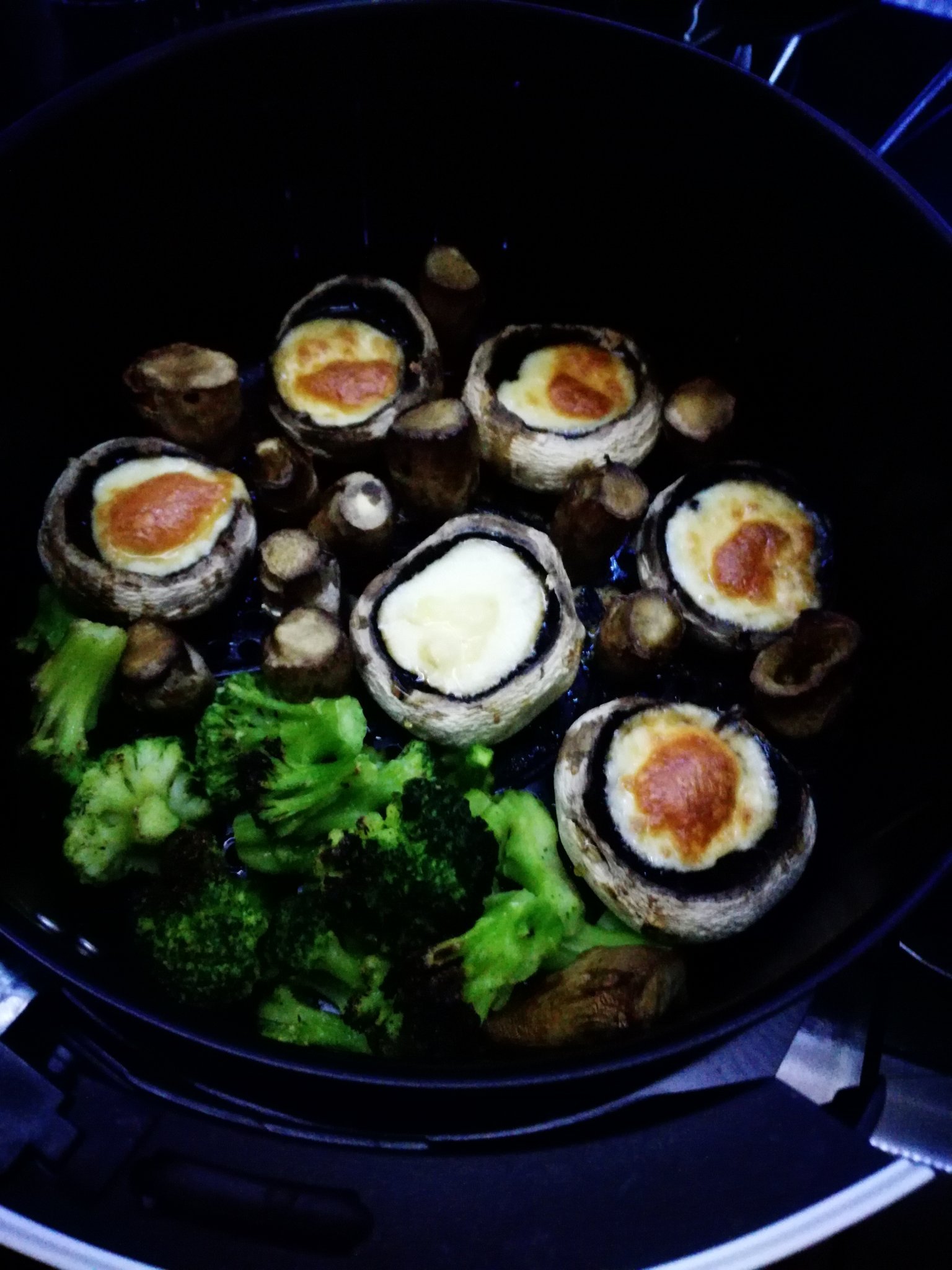 Направих пълнени тиквички с кайма.Първо запекох издълбаните тиквички.После отделно в метална купа пак в уреда задуших каймата.Накрая добавих издълбаната част от тиквичките.Напълних ги и пак запекох.Когато са почти готови поръсих настърган кашкавал.Станаха много вкусни.