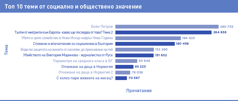 Ако през цялата 2017 най-вълнуващата обществена тема е била тази за навлизането на емигранти в Европа и България и последиците от това, то през 2018 тя полека отстъпва челните позиции на нови събития, събудили потребителския интерес.