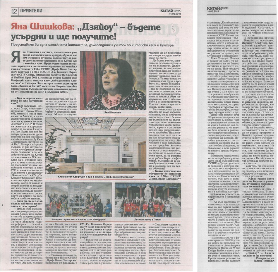 Едно прекрасно интервю в "Китай днес" за нашите паралелки!