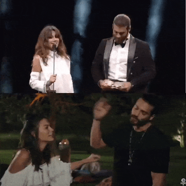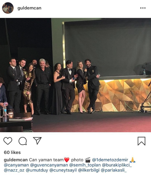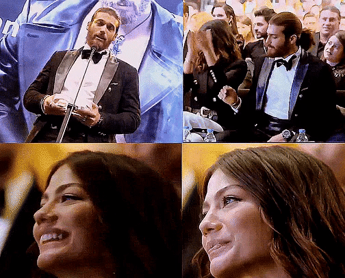 "Я благодарю Демет Оздемир. Хорошо, что она есть, сниматься с ней очень интересно. Иногда кто-то не может работать с удовольствием, но благодаря Демет я прихожу на работу с огромной радостью, съемки проходят очень весело. Здорово быть в одном месте, на одной площадке с ней, и это видно на экране.