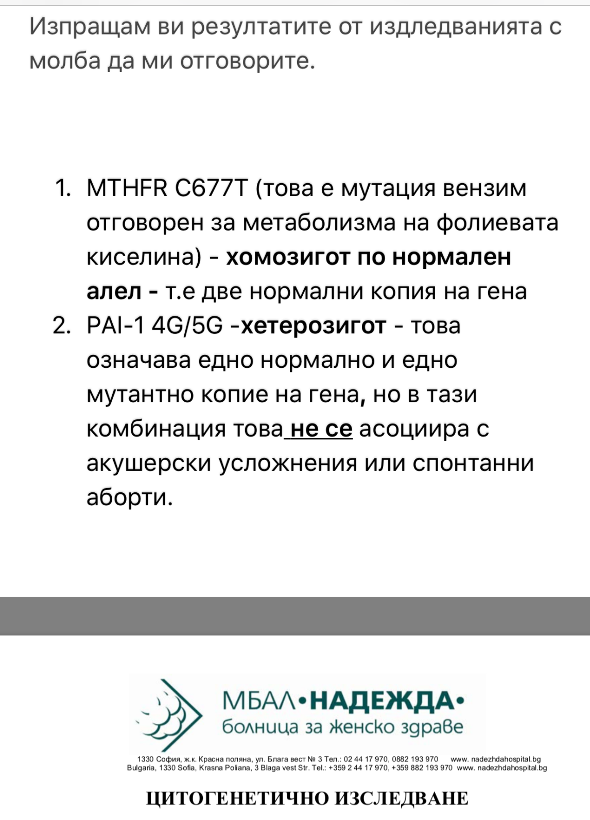 Ходих на ФМ когато бях бременна с моя син през 2016 , но консултации за тези резултати не съм правила 😔, защото моя син е борец и се появи без да приемам никакви лекарства , защото незнаех тогава до какво може да доведат тези мутации 😢, слава Богу се появи моя син износен, жив и здрав ❤