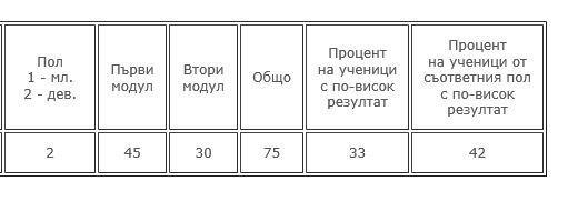резултат на първи. Като цяло - плачевен общ резултат. А уж е по-добре по математика. Май стресът е от голямо значение, а не дава вид да е много притеснена (то и аз съм така, де).