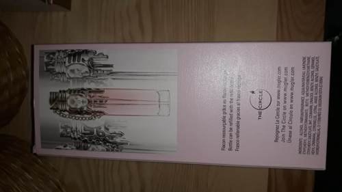Кутиите също имат  разлика- на старите под името на парфюма пише Thierry Mugler и страните са сребристи, а на новия  пише само MUGLER  и е розова кутия.Видна е разликата от линковете, взети от интернет.