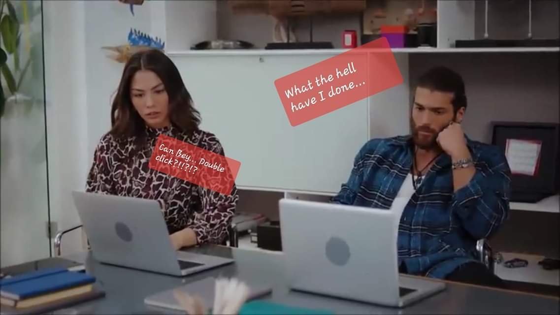 Тук самите движения на Санем предизвикват желание... потупването с крачето... Играта с косата и устните, Джан незнам как ѝ устоява... 😁( по скоро не ѝ)...