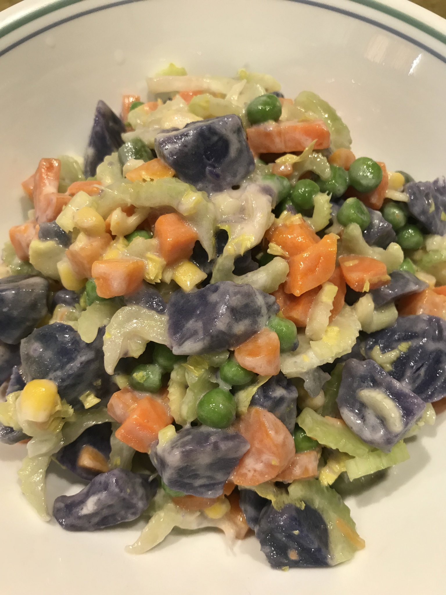 Снощи една зеленчукова салата с любимите ми синьо-лилави картофи. Ама свърши.