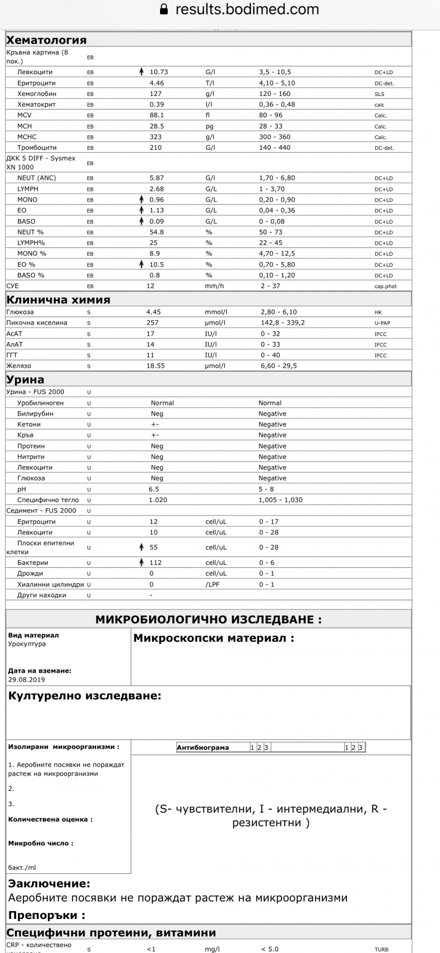 Ако някой има представа на какво може да се дължат резултатите по-долу (предвид чистата стерилна урина...), ще съм много благодарна да сподели!