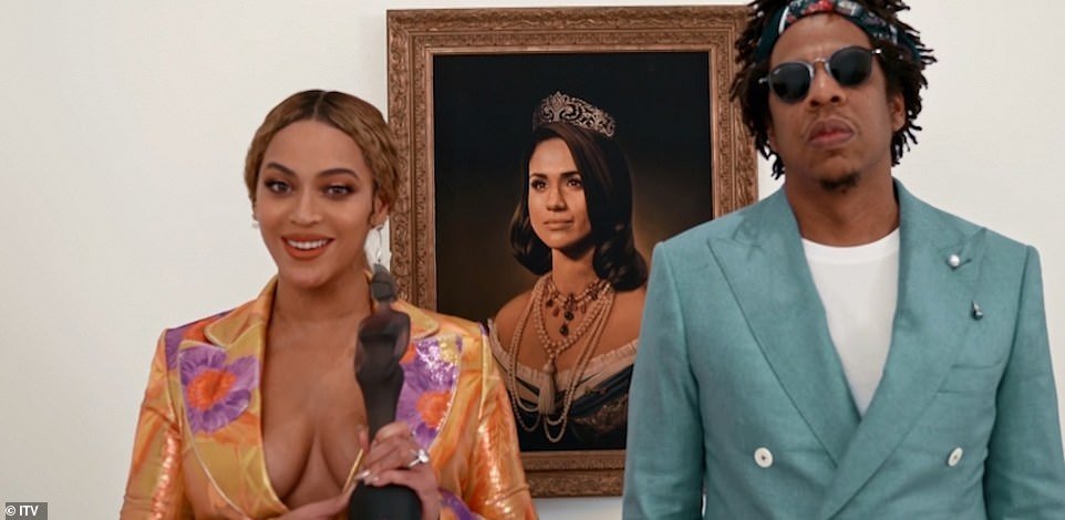 Бионсе и Джей Зи благодарят за Бритс наградата пред портрета на Мегън.