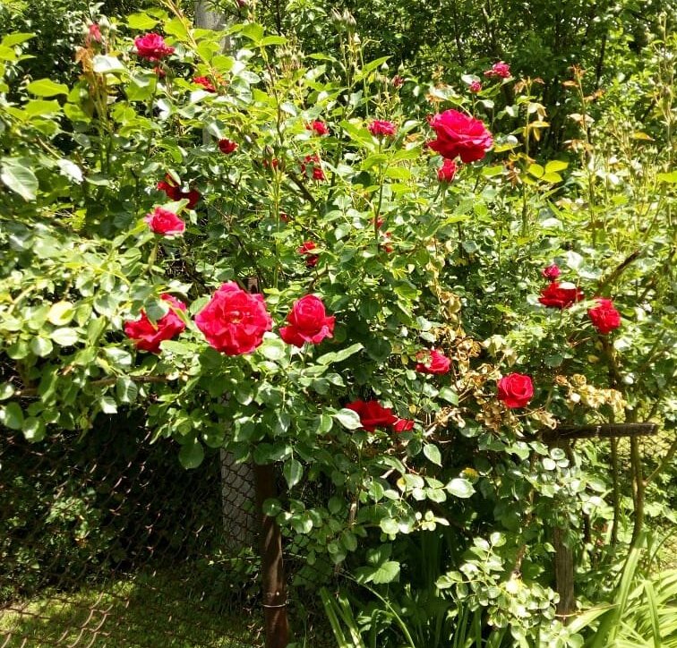 Точно в момента над порти и дувари в селските дворове цъфтят прекрасни червени рози. Моля кажете ми как се наричат и как да вкореня успешно такъв храст. Искам точно от старовремските рози Grinning