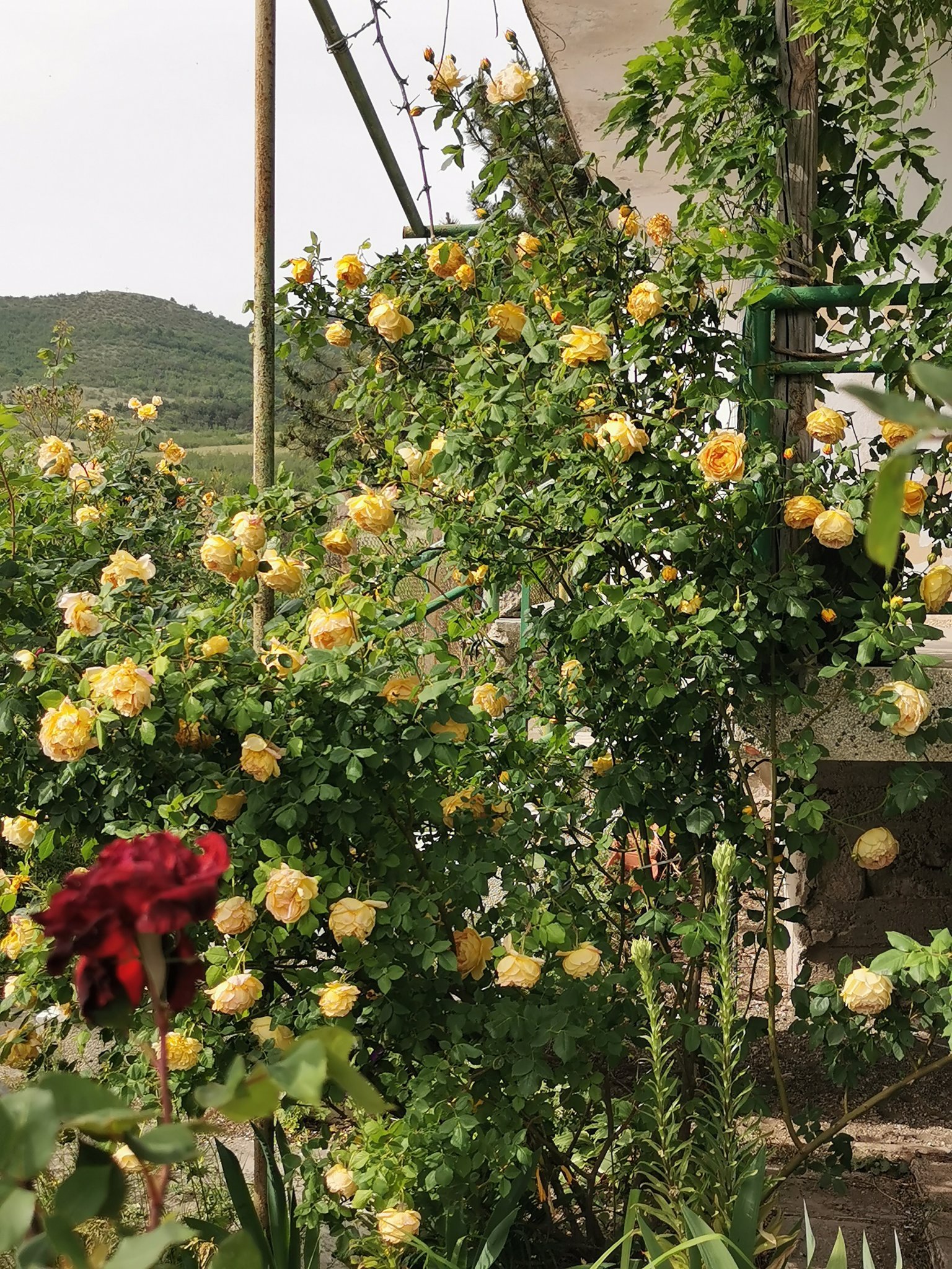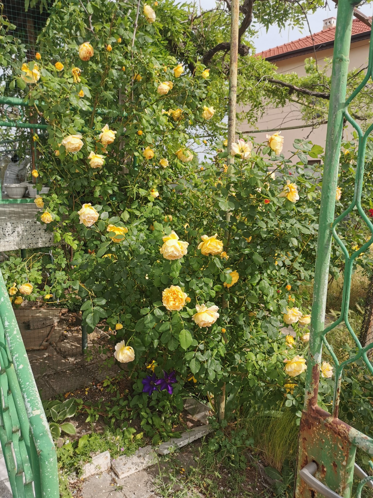 Ще трябвя да и' построим някаква катерушка, нямам подходяща ограда или стена.  Есдинствената подходяща ограда гледа на юг, ако я посадя там, ще цъфти само извън двора, а аз искам да си я гледам нацъфтяла Confused