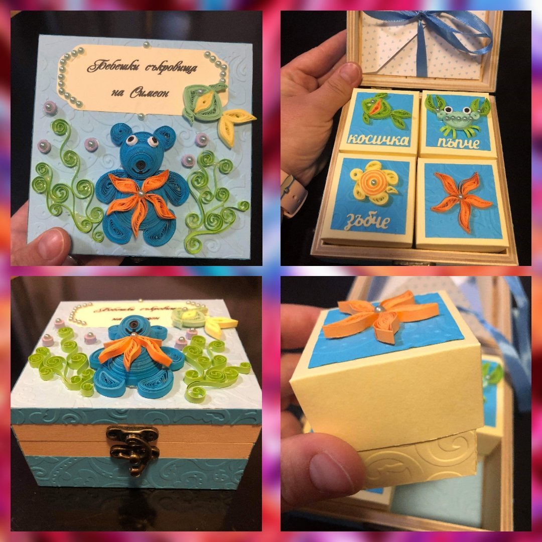 -Кутия за бебешки съкровища(подходящ за сантимемтални майки , съхраняват се вътре пъп, зъбче, косичка)