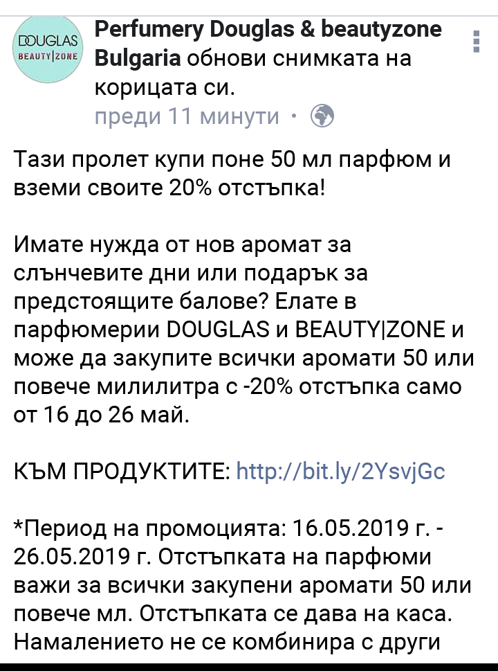 Форумът споделя информация за отстъпки за парфюми в магазини като Douglas и Beauty Zone, където има промоции на различни парфюми. Участниците споделят своите покупки и са доволни от получените отстъпки. Освен това се споменават и отстъпки за кремове за лице, като се споделят подробности за отстъпки на продукти на марки като Uriage и Usherin.