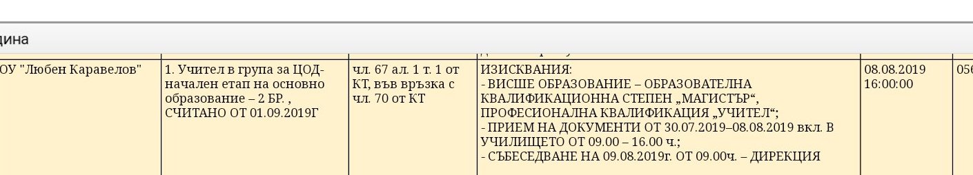Аз няма как да знам дали се е върнала дори за ден. Просто видях и нейната заповед, като моята, считано от 1 август се прекратява договора. Пишеше,че е по взаимно съгласие. А къде всъщност пише, че се закрива щата?