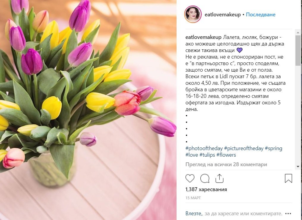 Ето така поднесено, поне при мен, има много повече въздействие и бих минала да си взема китки, отколкото да ми обясняват 20 мин за "пресни свежи зеленчуци от Билла България"