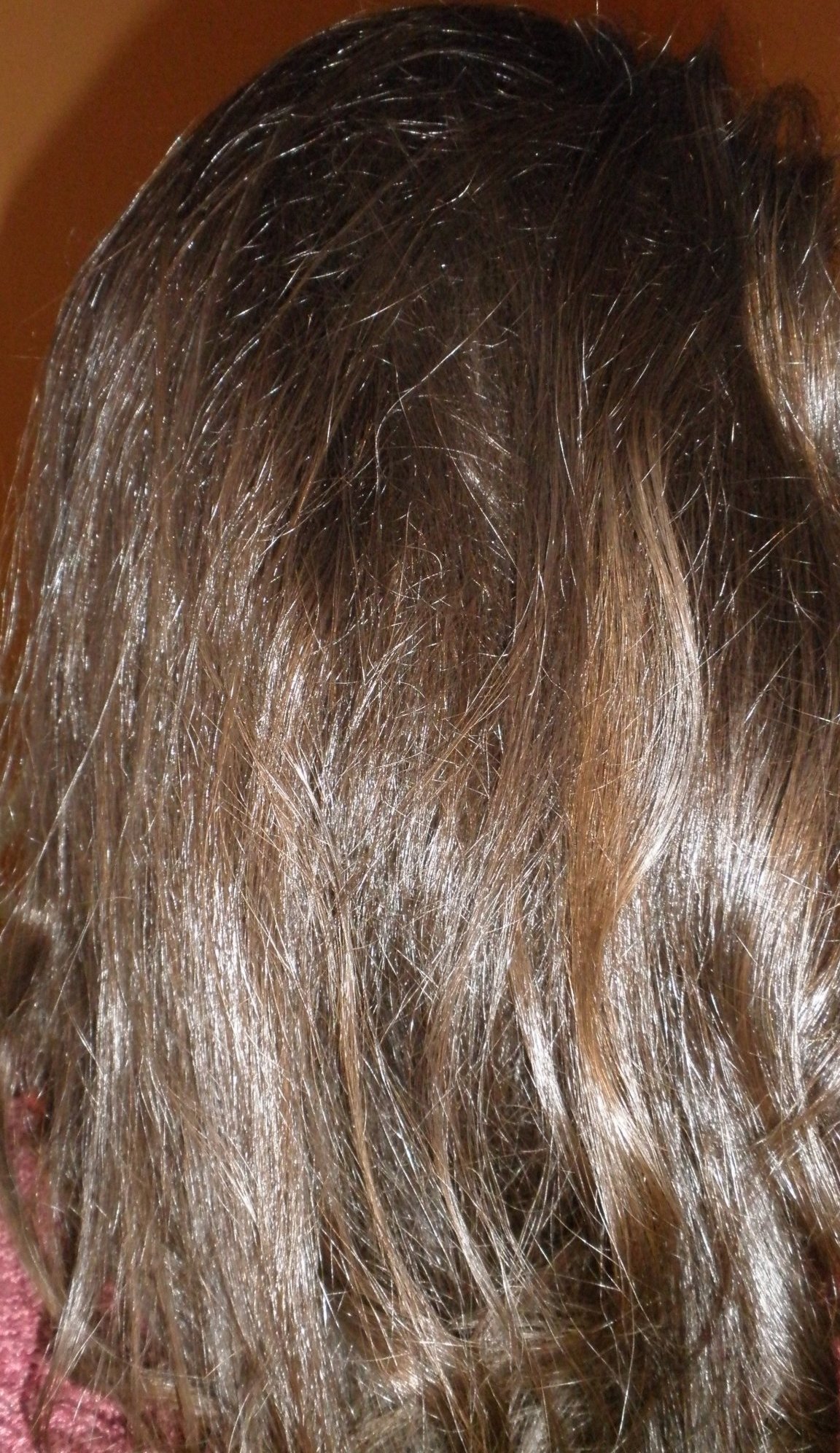 Естествената ми коса е по-светла от твоята и по-пепелива - твоята ми изглежда златиста, но с тази комбинация става по-тъмна.