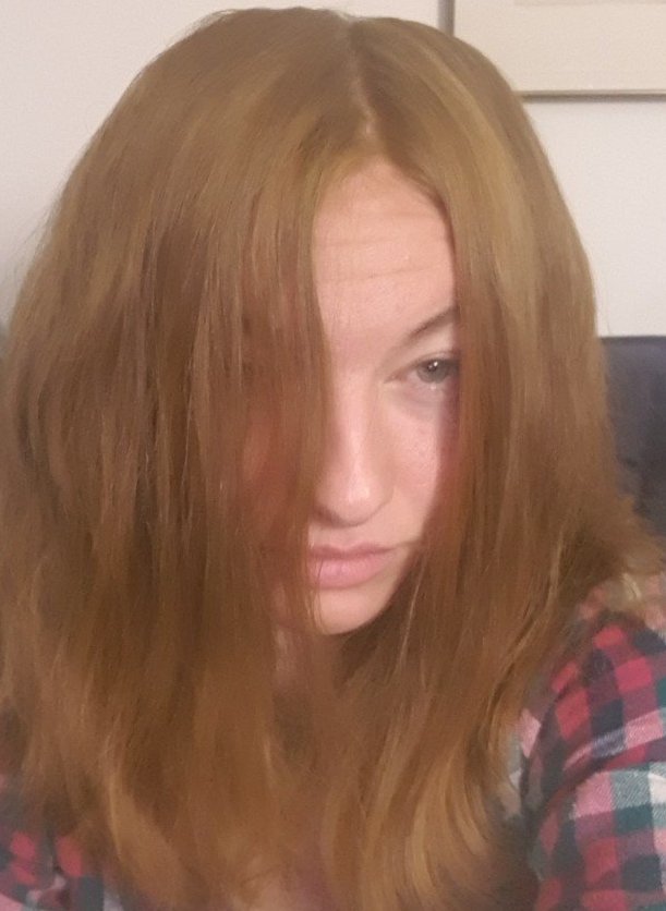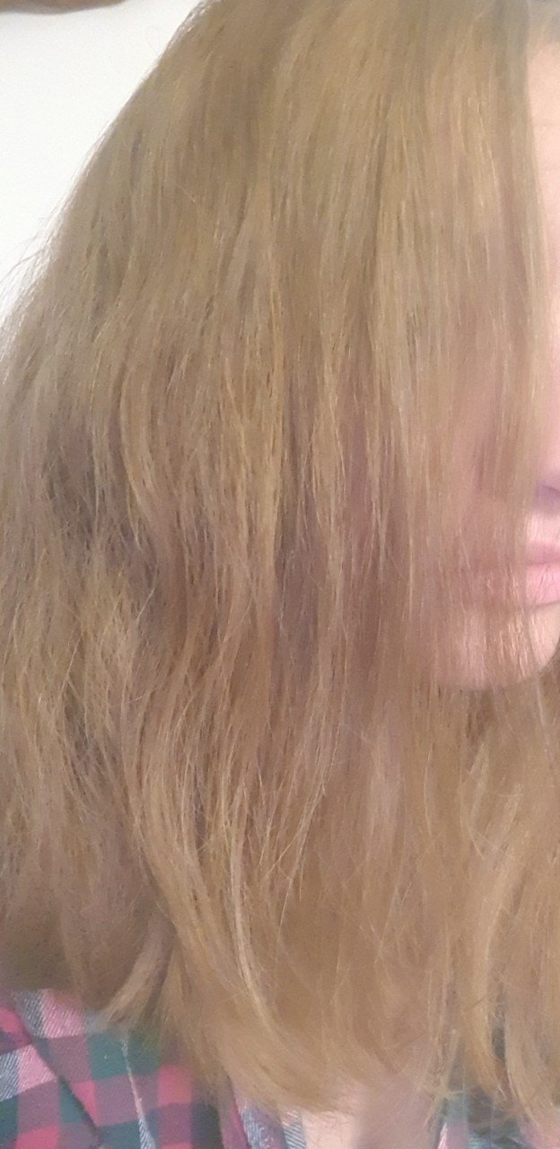 Вчера се намацотих с касия, към която добавих малко къна. Оксидира 5 часа и половина и после седях 2 часа и 15 минути някъде. Щях и още, ама стана посред нощите и едвам гледах. Но за щастие, се получи това, което исках - меден нюанс. Косата ми е тъмно руса, забравих да я снимам преди мацотенето, но ви слагам една скорошна снимка да придобиете представа за цвета преди.