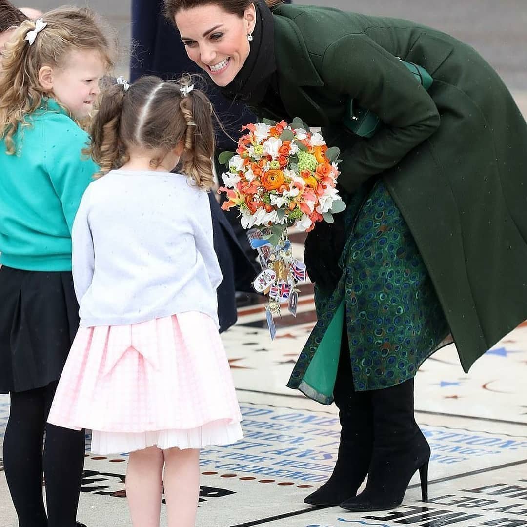 Кейт изглежда добре, особено с палтото.Десена на роклята и ми е малко странен.Май паунови пера трябва да имитира.