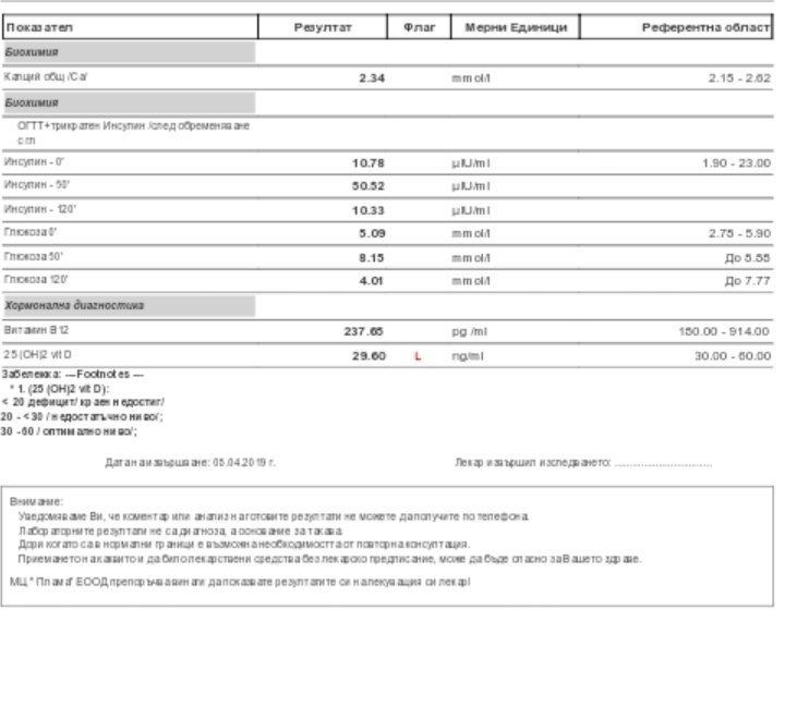 Инсулина ти е висок, а вит.В12 и вит. D са ниски.
