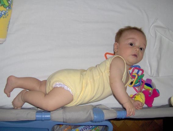 Днес сутринта я хванах, че се мъчи да си напъха крака в устата  hahaha Не успява още, само го дърпа с все сила като го хваща за пръстите  Joy