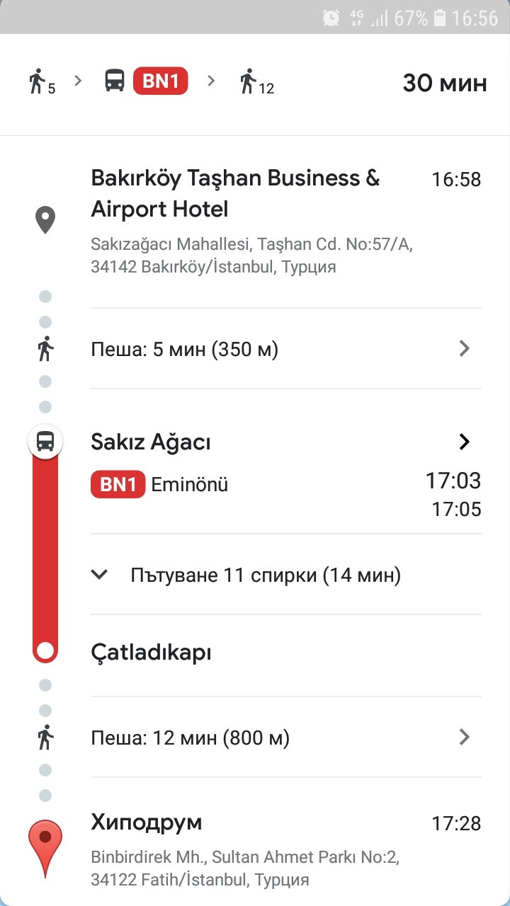 Сега вече ми стана пълна каша. Мислех да ползвам метрото и да се прехвърлим до Yenikapi, но спирката на метро не откривам. А на М1А ми го показва като спирка. Ще търся пак с Googlemaps.
