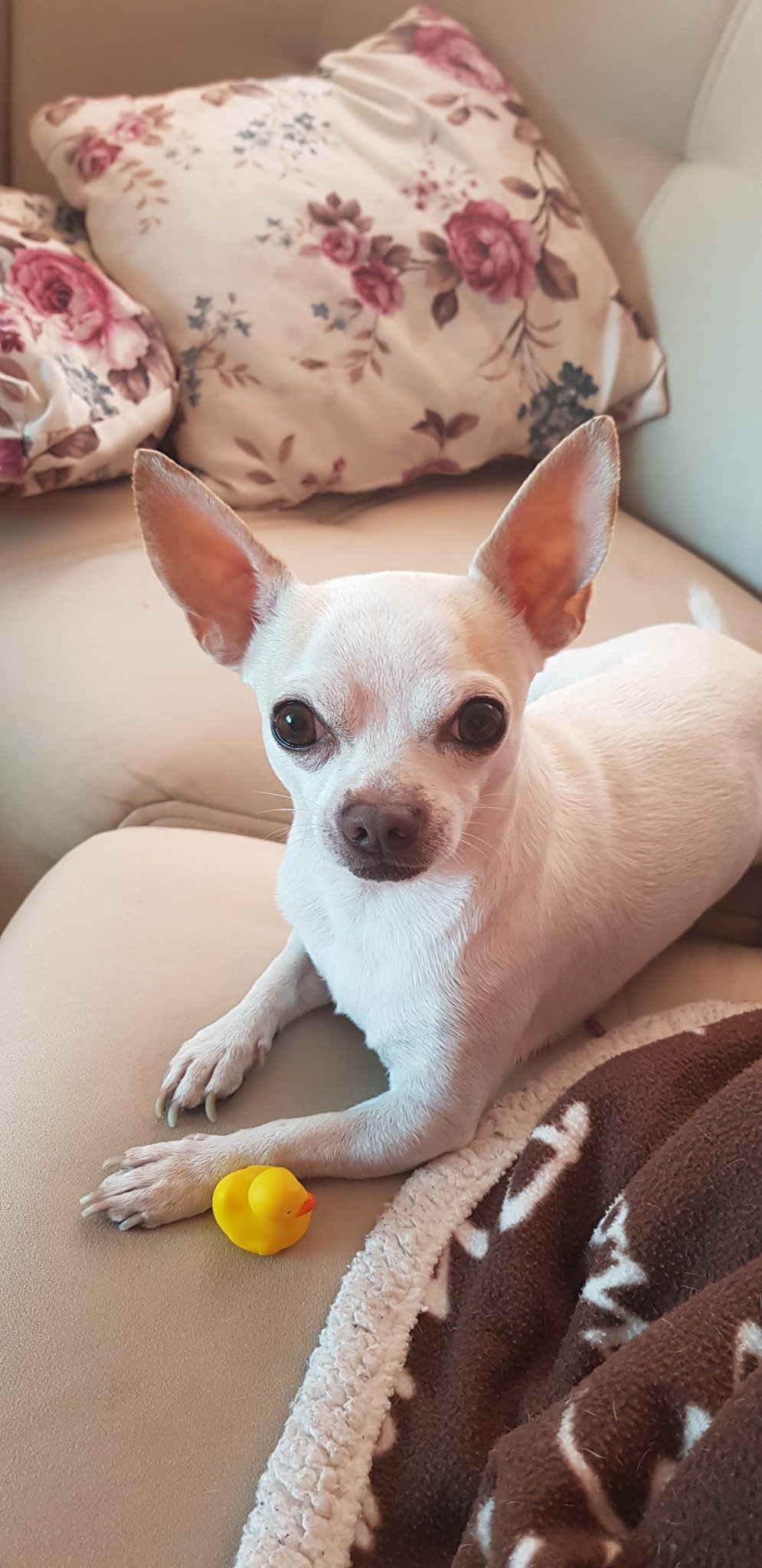 Жълтата поставка за таблета се казва Мила. Осинових я от улицата декември 2014 година, беше на около 4 месеца.