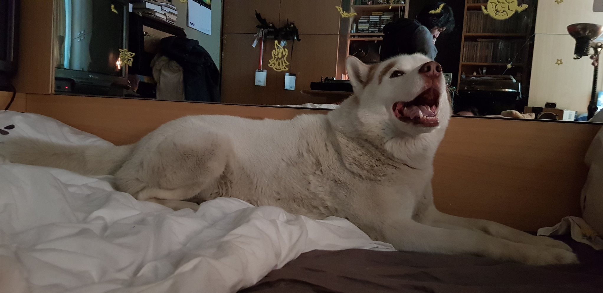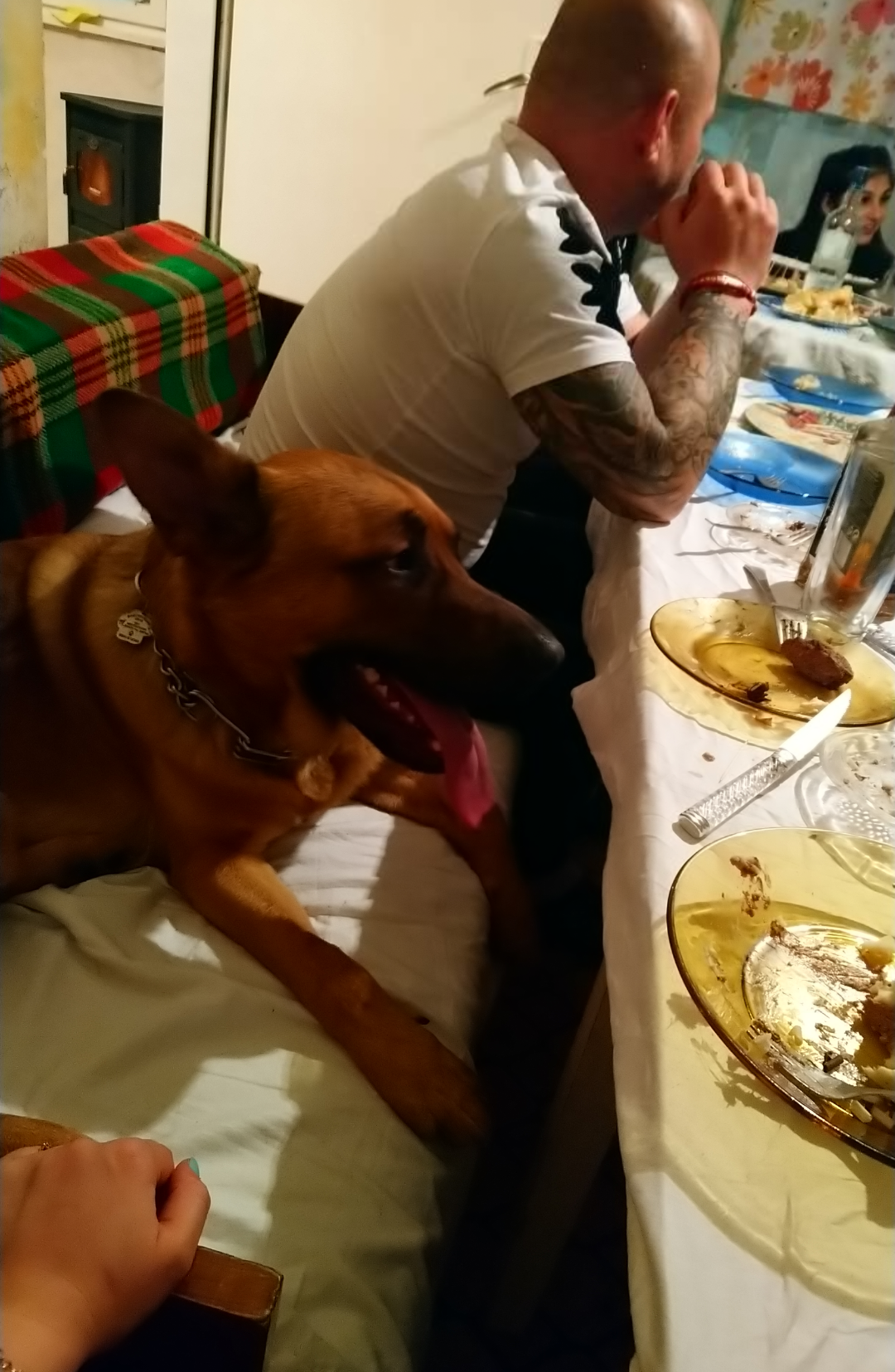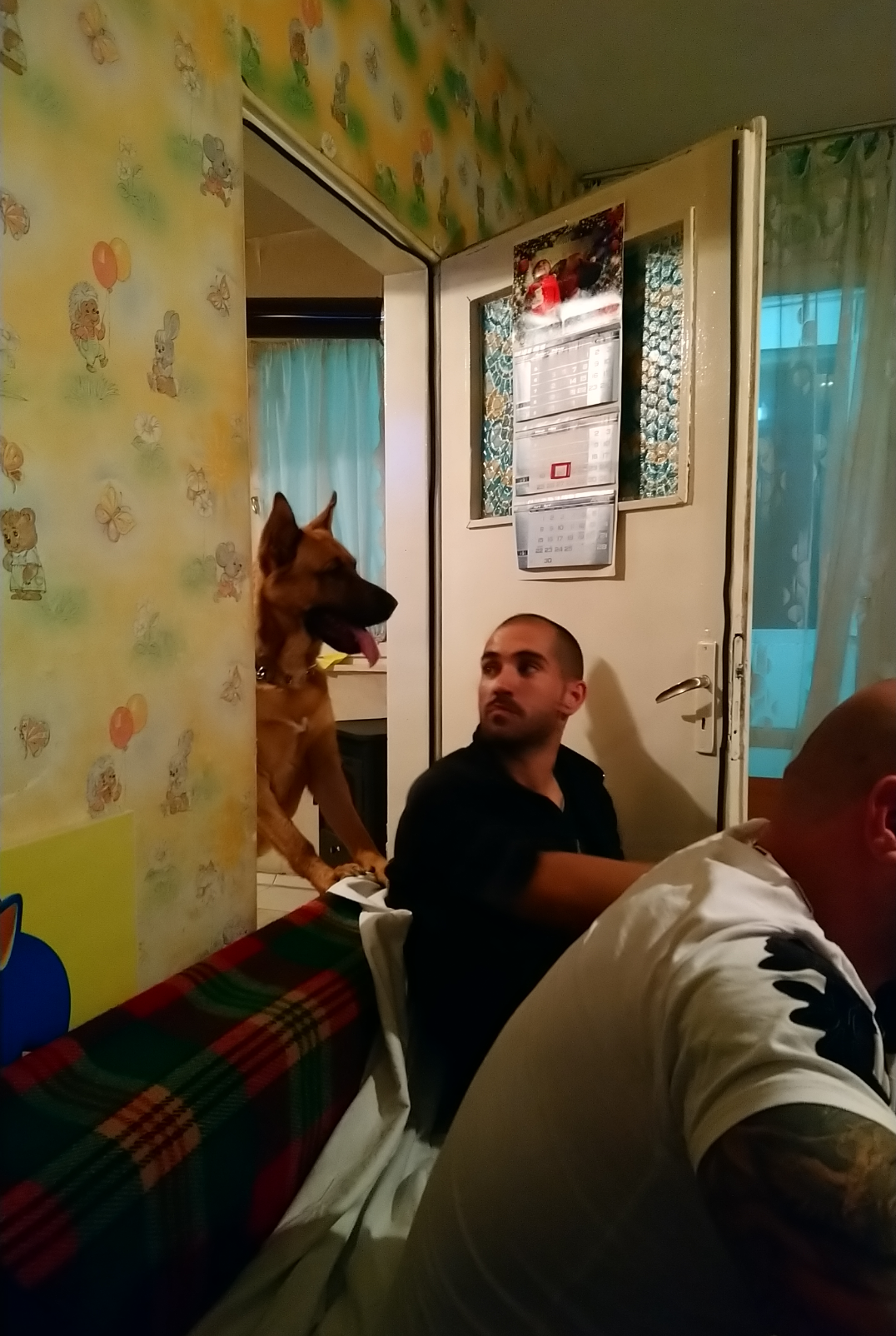 Днес бях рожденичка, имахме гости. Ерос първо не го пускахме при гостите и за пръв път виеше. От долу се оплакаха и го пуснахме. Е, не беше толкова зле. Малкото дете на кумовете много му се кефеше, а той не изяде никой. Нацелува мама и се кротна. Grinning