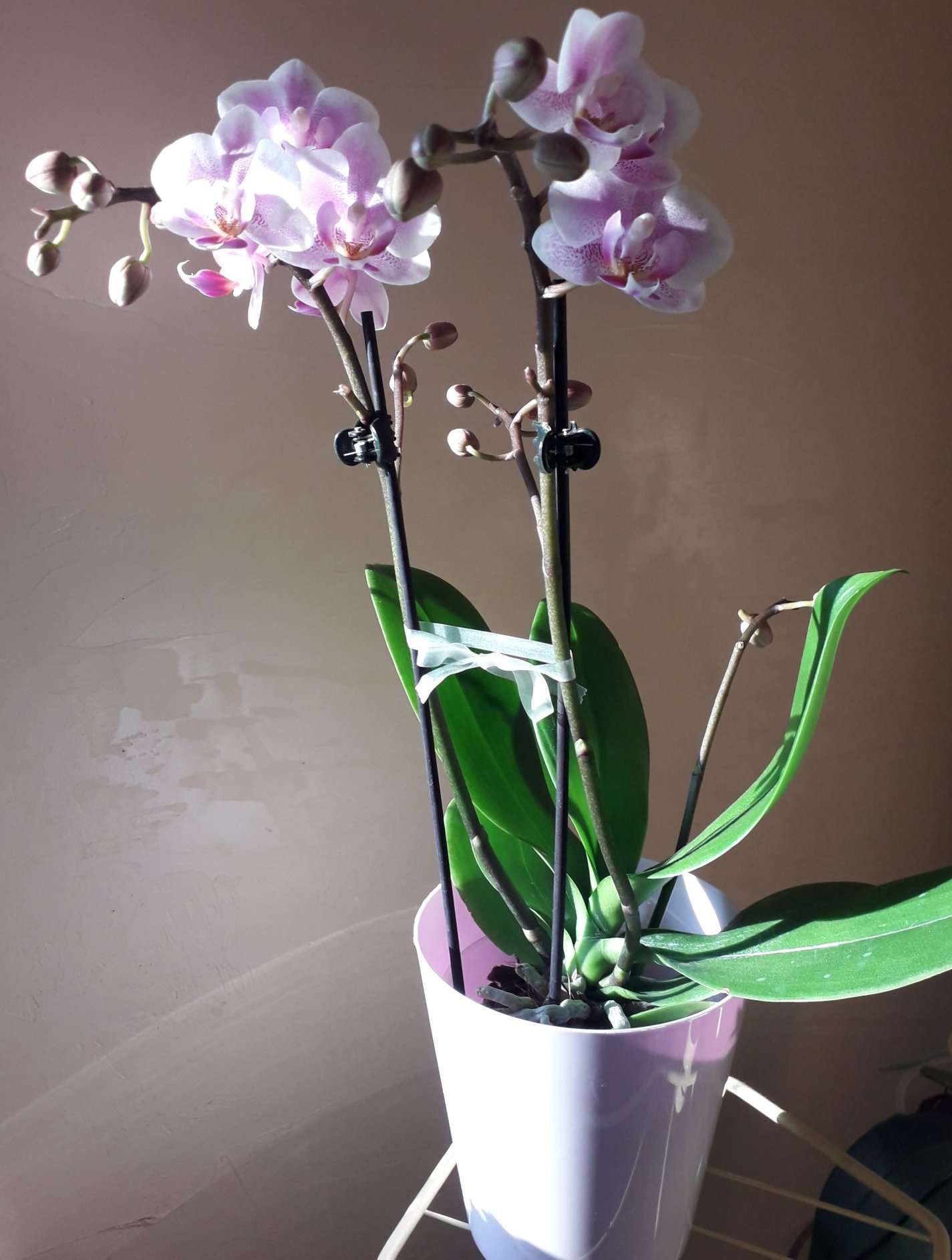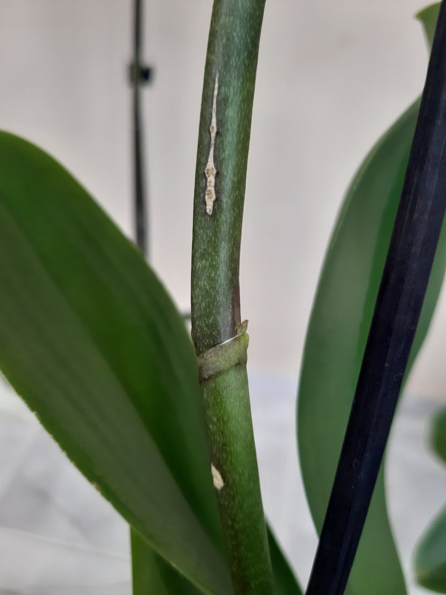 Не мога да им се нарадвам. Като ги "пресявах" забелязах, че на цветоноса на едното има някакви "неща". Дали са разклонения на цветоноса ? Сякъш не излизат точно от спящата пъпка, а над нея.