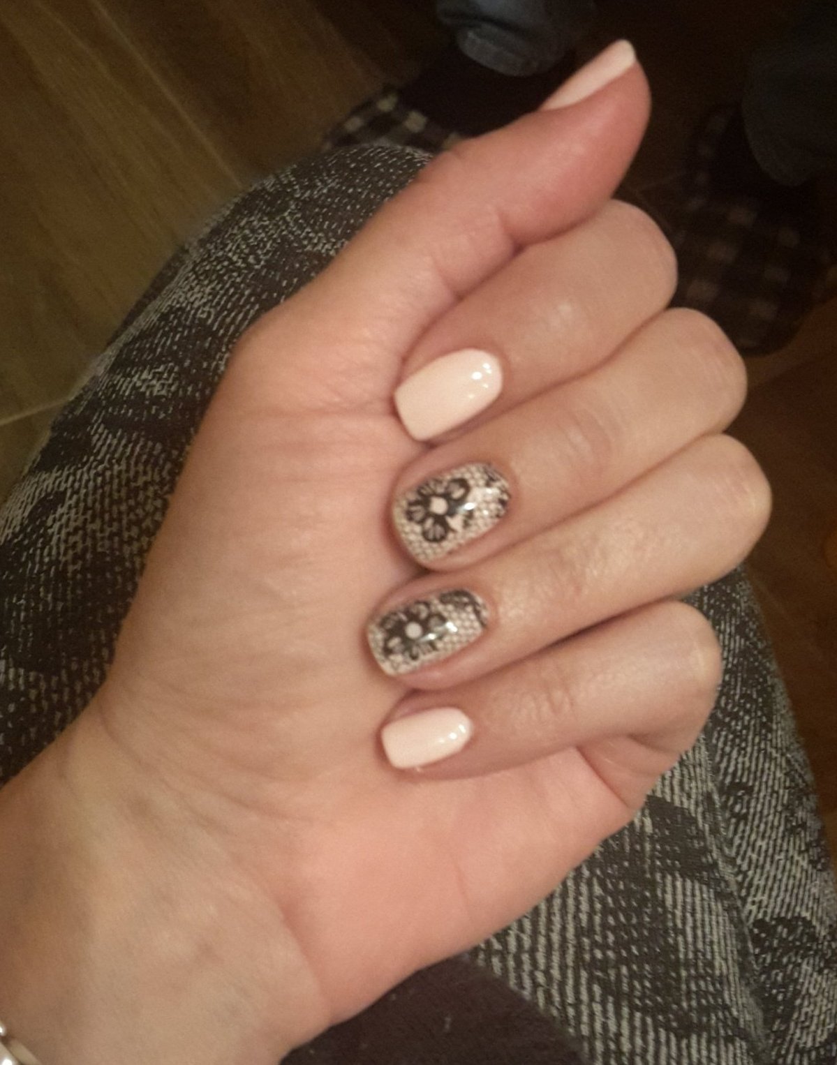 Сега съм с един цикламен и цикламен+брокатен на някои пръсти, но пробвах пак белещата на борн прити и се отделя почти от първия ден. Ще трябва да го сменям Sad